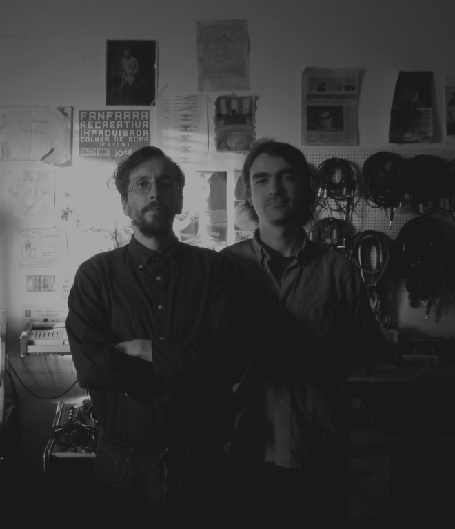 Jonathan and Felipe are deeply involved with the idea that reality can be actively created and not just passively observed. In that sense their main influences are the works of visionary masters such as Saint Hildegard von Bingen, William S. Burroughs, Sun Ra, Jorge Luis Borges, JG Ballard or Rammellzee, who all constructed their own personal cosmologies. On the level of operation practices and simple encouragement, the duo have drawn inspiration from the activities of central elements of the portuguese experimental scene: musicians like Carlos Zíngaro and Rafael Toral, writers like Rui Eduardo Paes, structures like Co-Lab, a music festival that, for about 5 years in the late 90s and early 00s, created collaborations between stalwarts of the improvised scene and local Porto musicians, and Matéria Prima, a record store/concert promoter that has continously supported their work. These examples strengthened the already present impulse towards a DIY approach, of creating simple, viable structures for working in the absence of sustained external support.